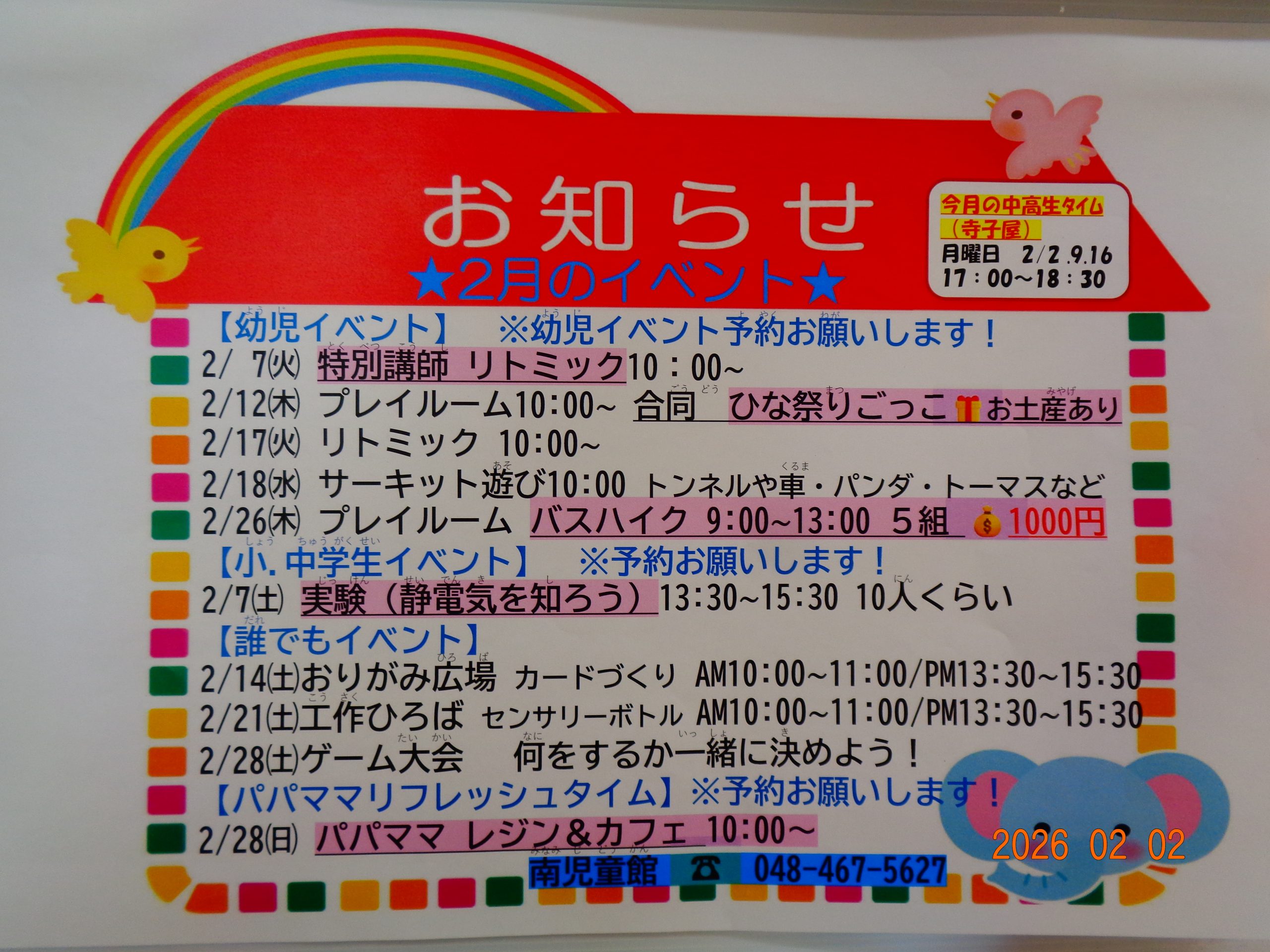 寒くなってきましたね… 今月もイベントたくさん用意しています。 ぜひ、遊びに来てください。 暖かくして お待ちしてお ……