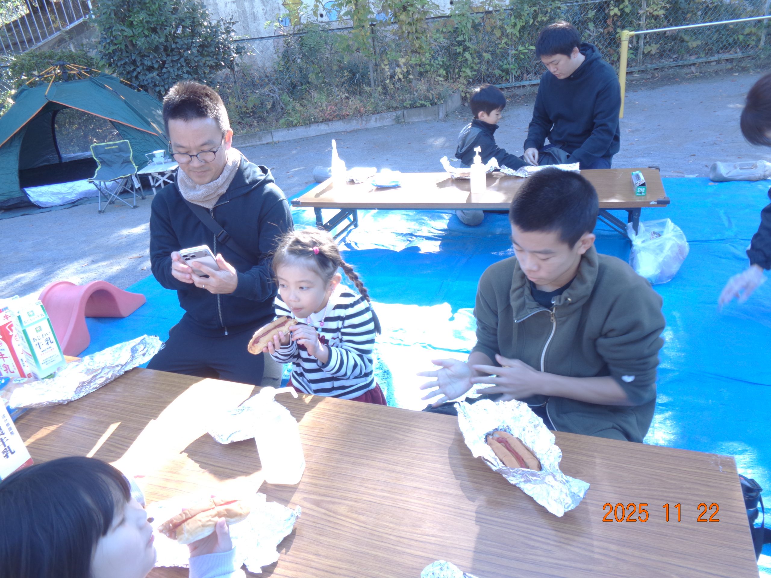 寒い中 園庭で食べる熱々ホットドック「おいしかった!!」と喜ばれていました。