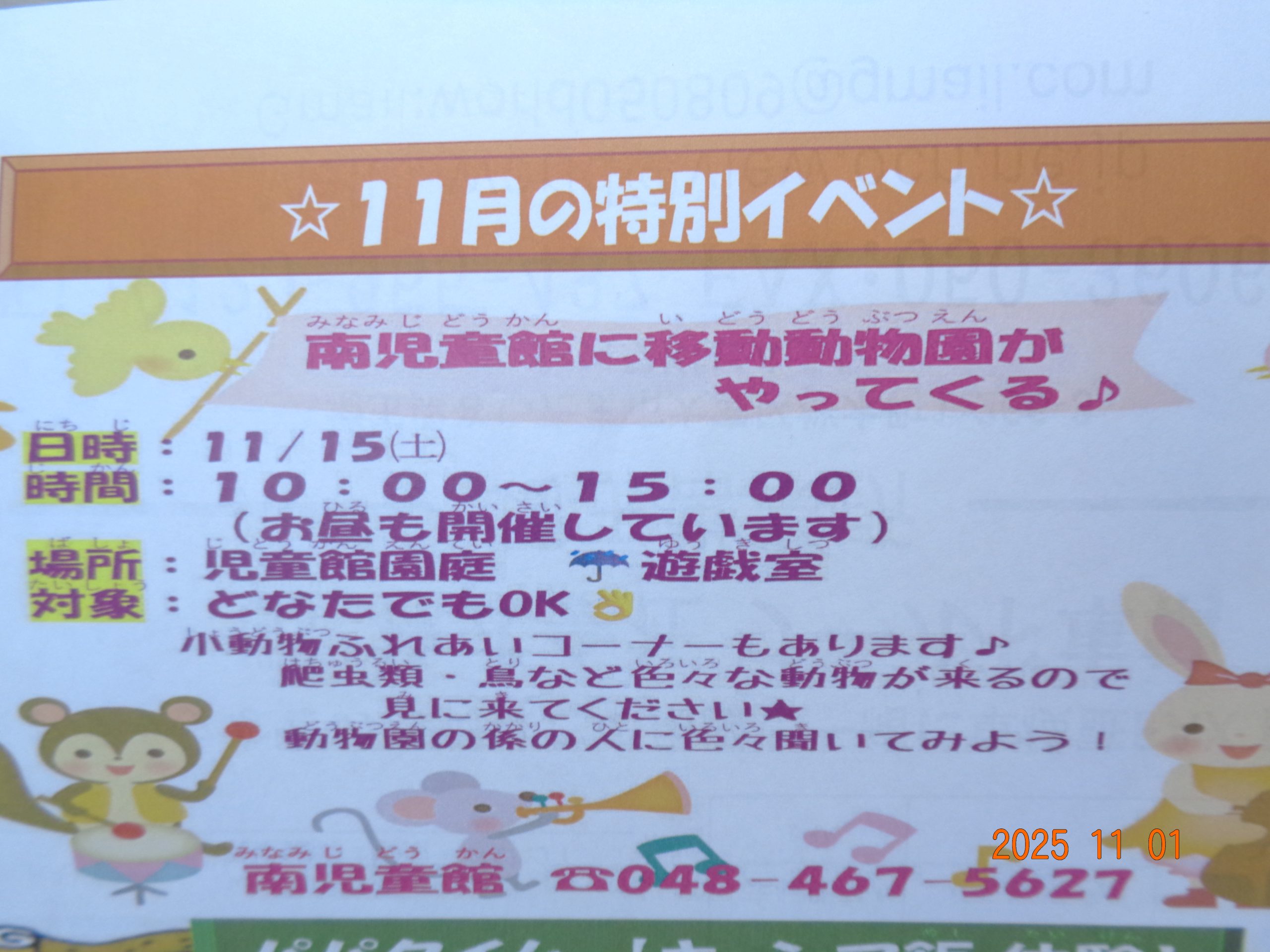 11/15㈯ 10:00~15:00 (お昼時間も開催します。) 場所/児童館園庭 雨天の場合遊戯室です。 ふれあい ……